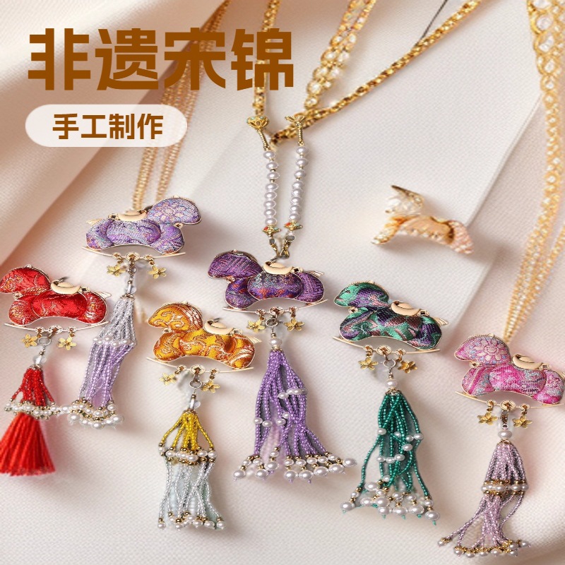 宋锦发夹吊坠发簪diy材料包葫芦蝴蝶发饰胸针底托节日礼物项链