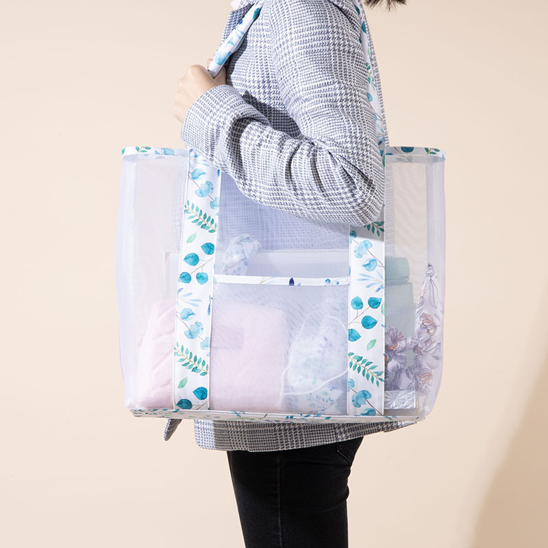 透明手提网料托特包大容量沙滩收纳包便携可折叠单肩包