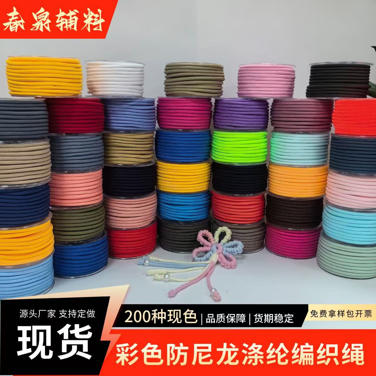厂家5mm彩色涤纶绳 编织带圆包芯耐磨捆绑环保多用手提绳防滑鞋带
