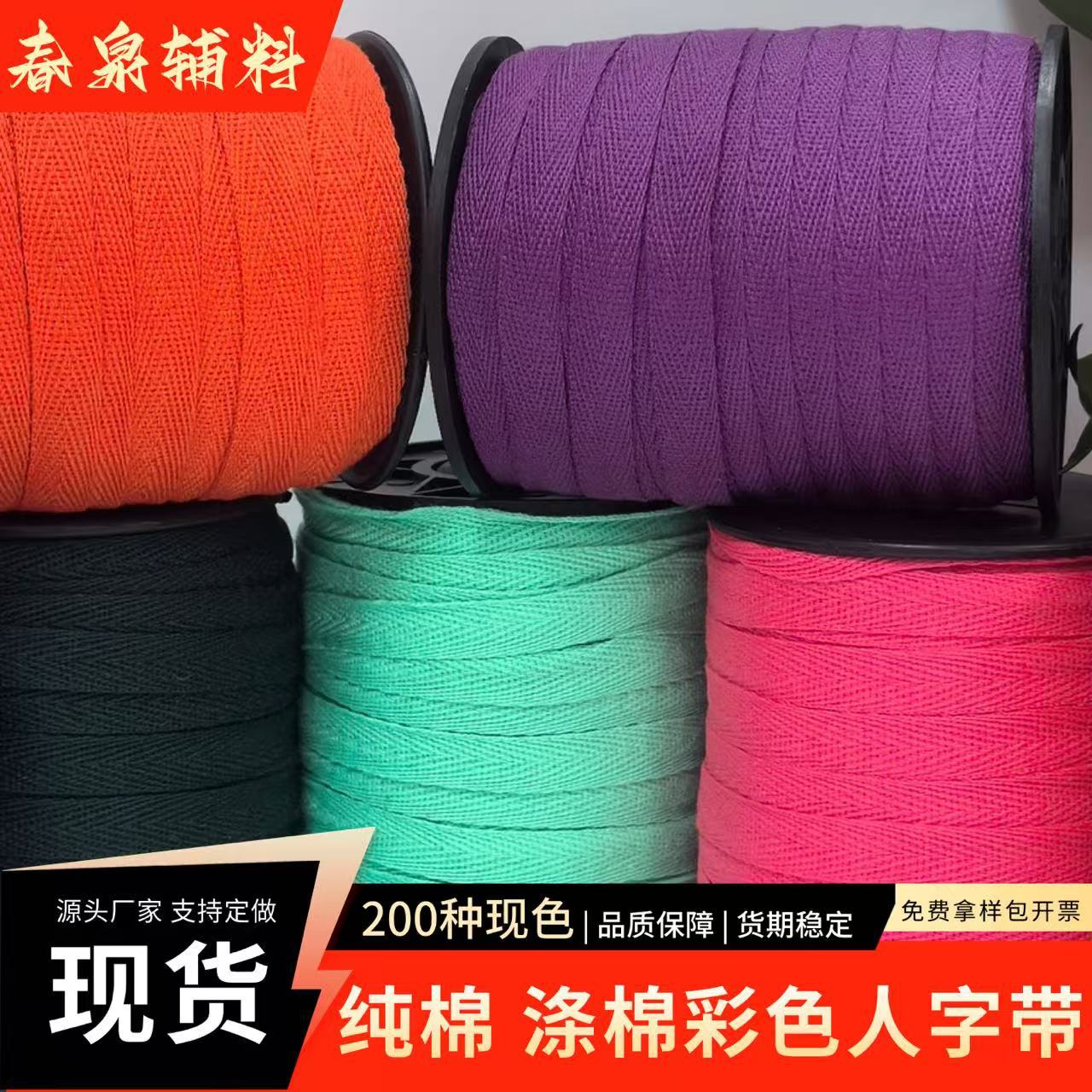 现货棉彩色人字带1cm涤棉人字带 批发 服装辅料 后颈包边领口压条