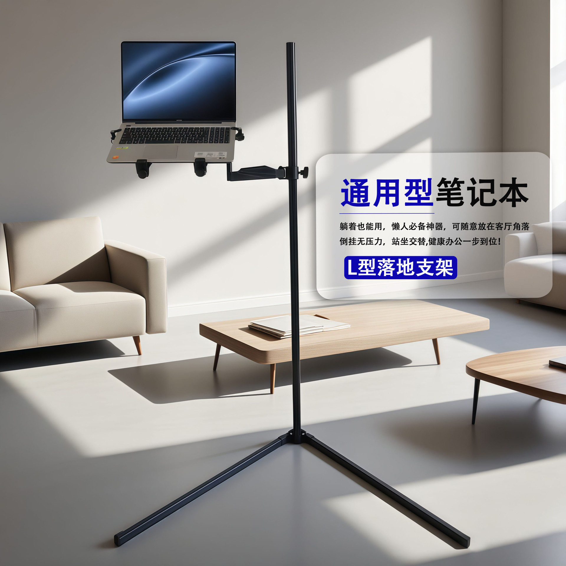 L型底座落地笔记本支架可自由灵活伸缩旋转多场景适用追剧神器