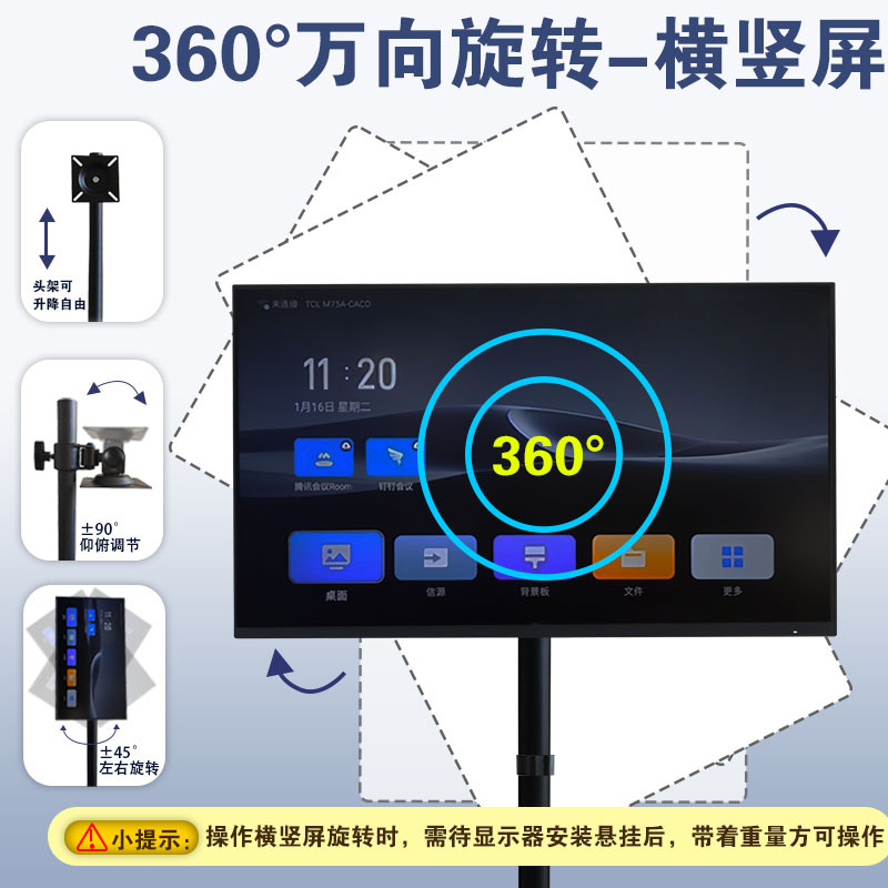 液晶电视360°旋转架19-65寸通用电视隔断墙背景墙可藏线升降支架
