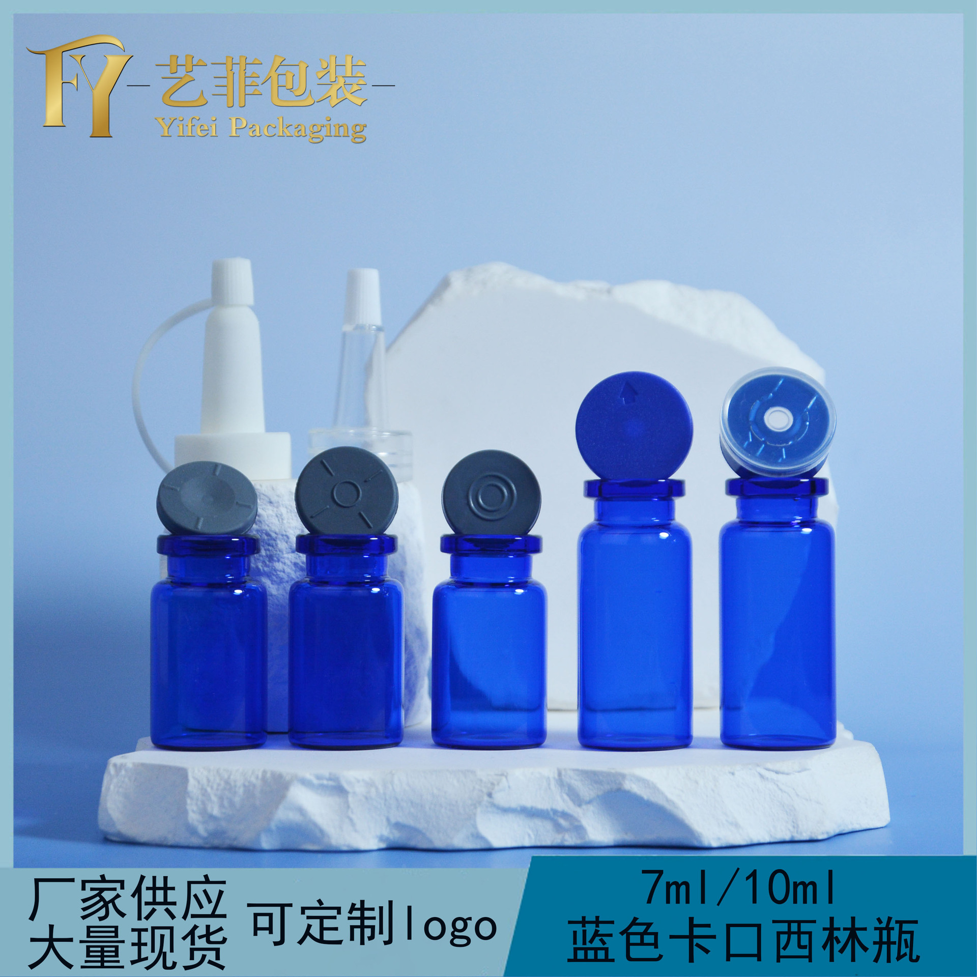 现货7ml10ml蓝色卡口西林瓶精华冻干粉液空瓶青霉素瓶小样分装瓶