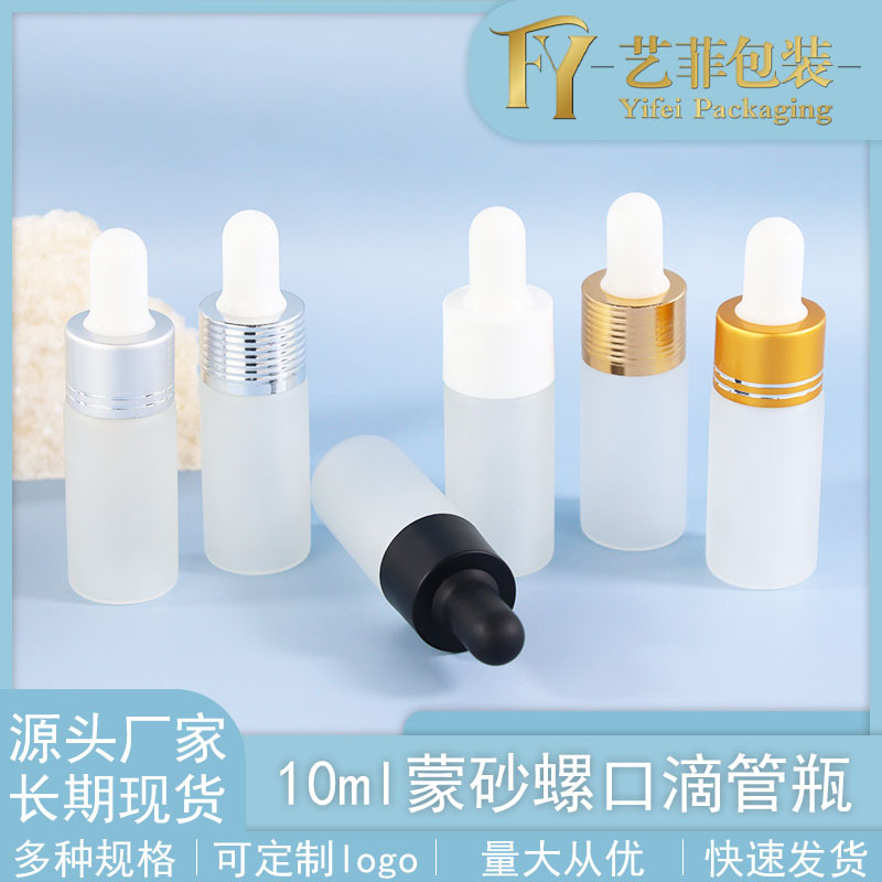 源厂现货10ml蒙砂螺口滴管瓶 18牙精油分装瓶 精华液小样玻璃空瓶