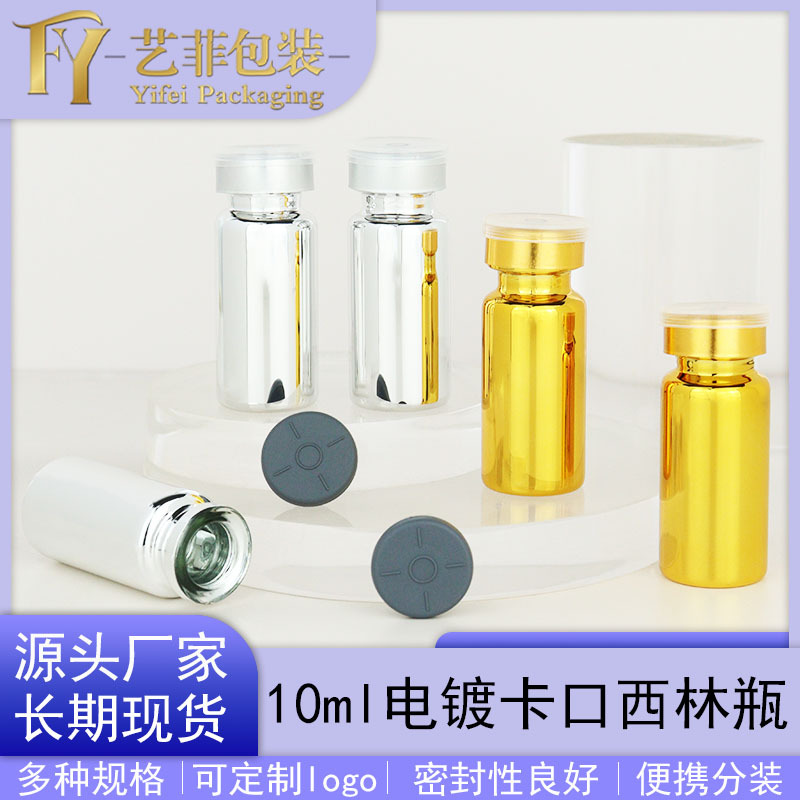 现货电镀金西林瓶 10ml高档避光电镀银原液瓶 医美冻干粉小样空瓶