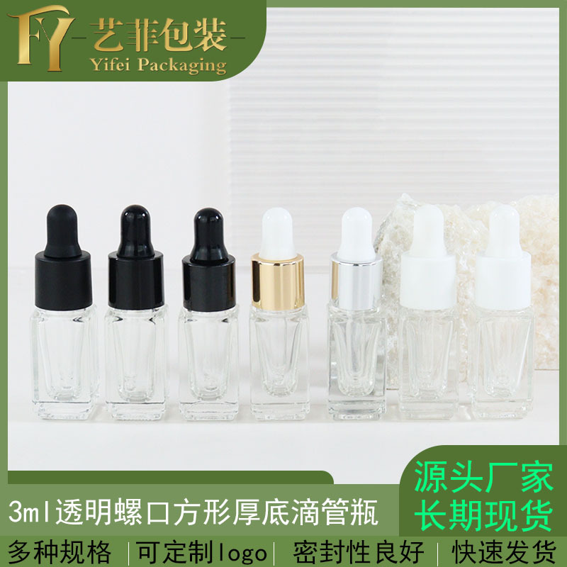 现货3ml方形厚底透明滴管瓶 精油玻璃分装瓶 精华液空瓶 精粹水瓶