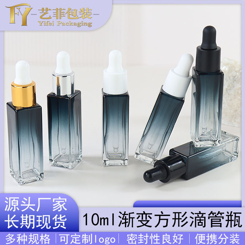 现货10ml渐变方形滴管瓶 厚底 高级精油滴管瓶 精华小样分装玻璃