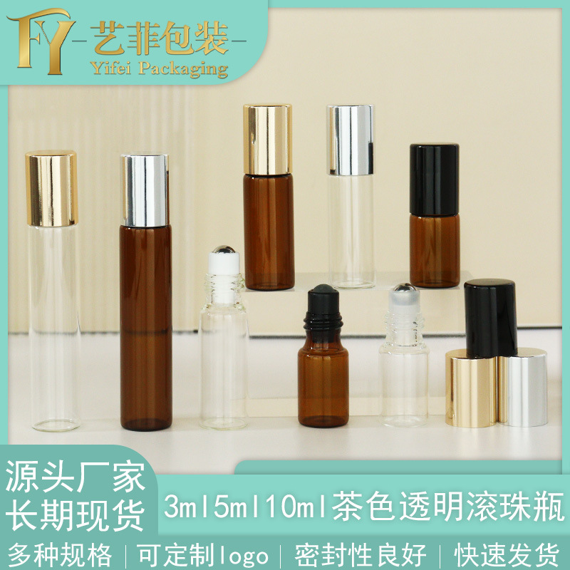 精油滚珠瓶现货3ml走珠瓶 5ml茶色避光玻璃滚珠瓶 10ml香水分装瓶