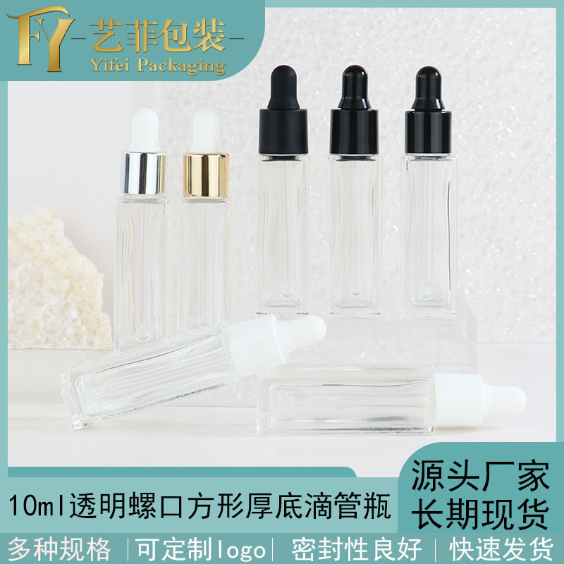 厂家现货10ml方形厚底透明滴管瓶精油分装瓶 精粹水空瓶 精华液瓶