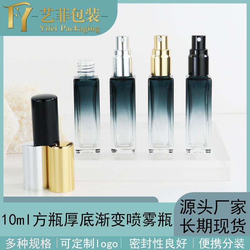 现货10ml渐变方形厚底喷雾瓶 香水分装瓶 精致高档便携式玻璃空瓶