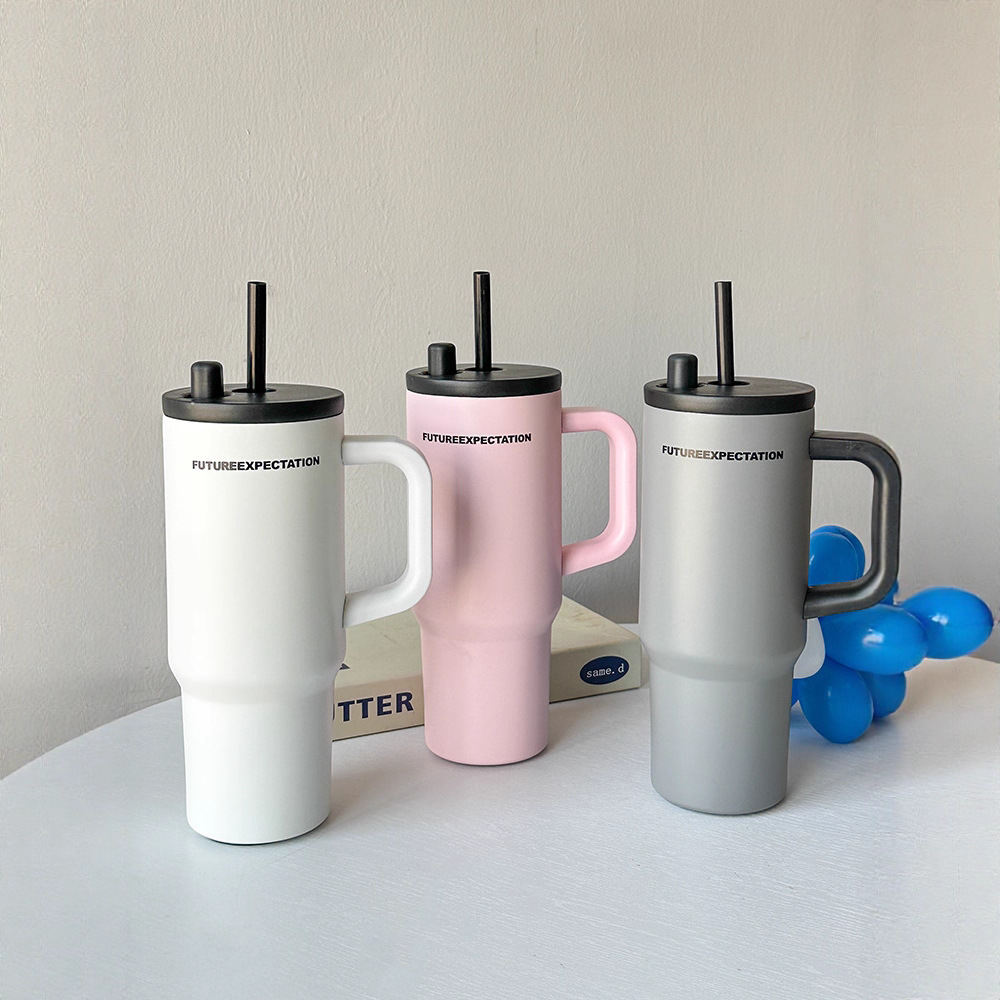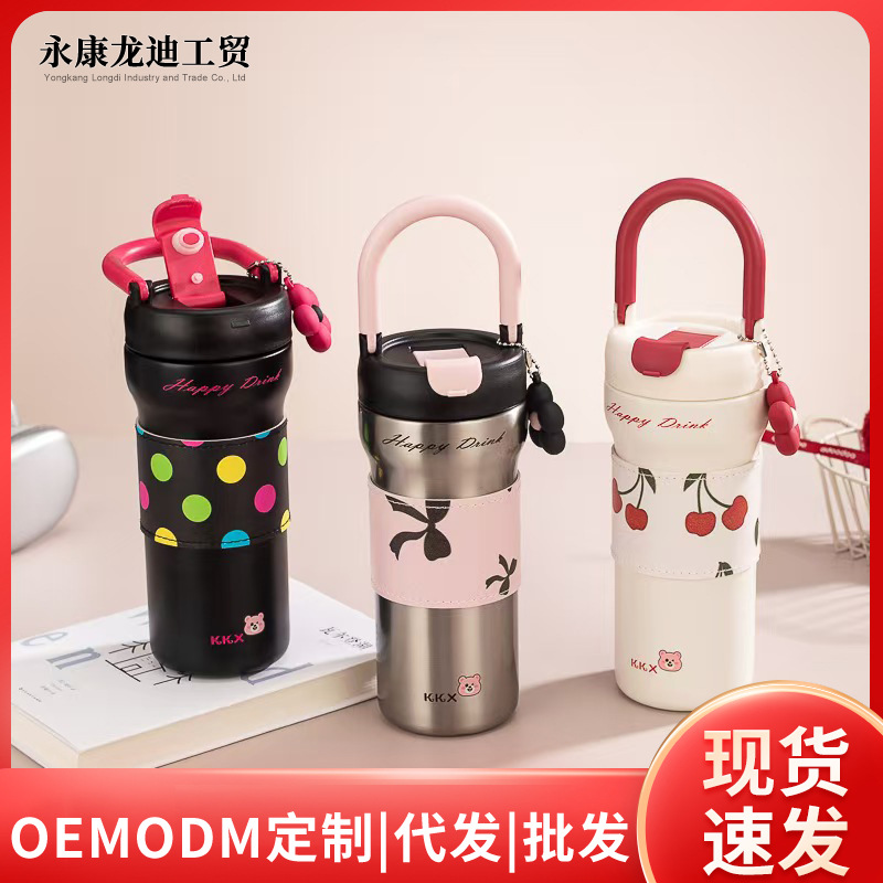 定制款316不锈钢真空吸管保温杯车载带手柄大容量汽车杯
