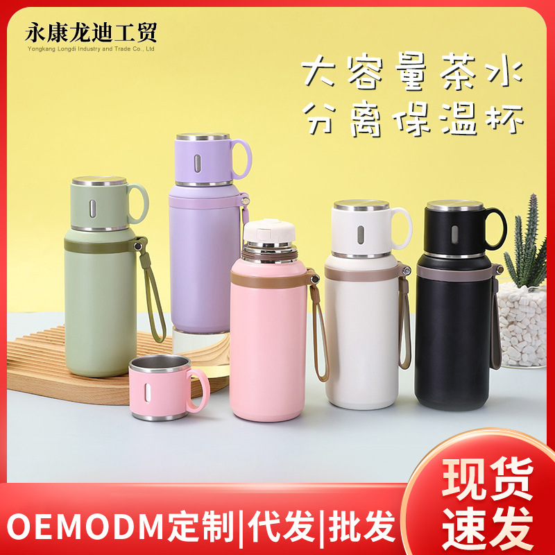 爆款大容量茶水分离不锈钢保温杯带提绳一杯双盖男女便携水杯批发