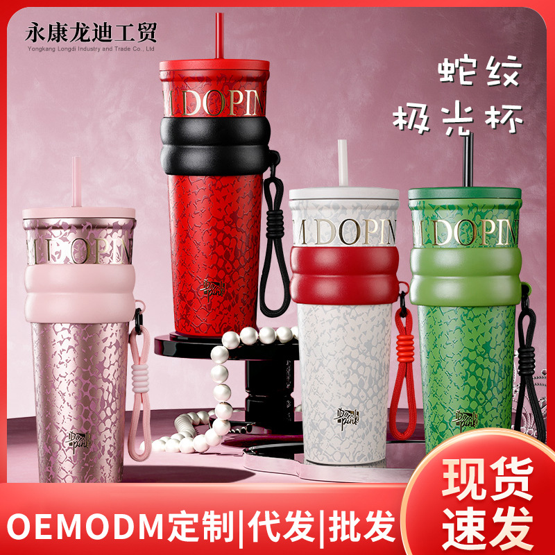 新款316拉伸内胆高颜值车载汽车杯大容量密封防漏便携吸管水杯