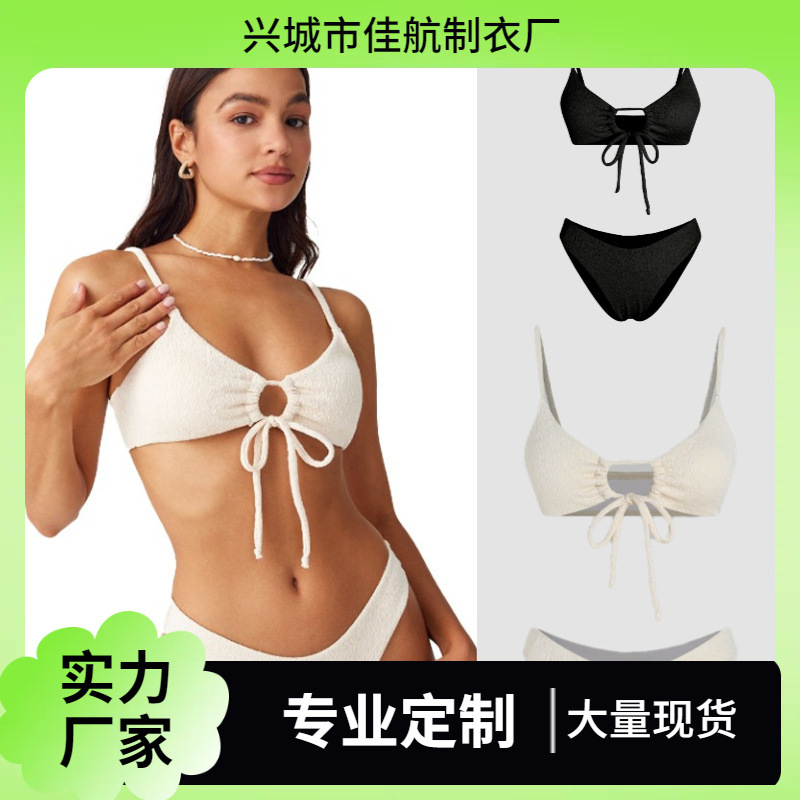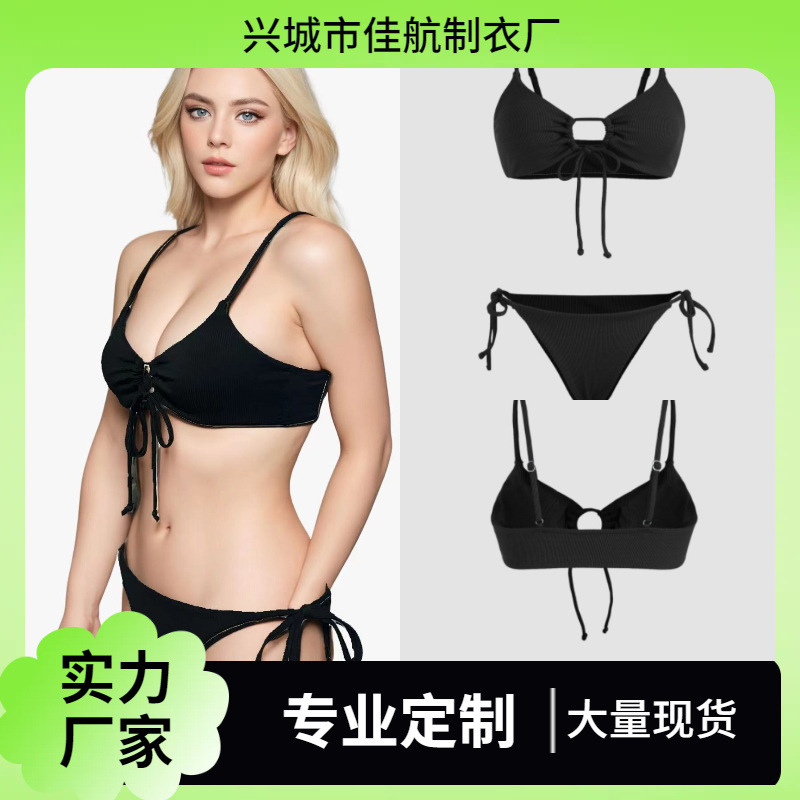 2025欧美跨境泳衣bikini性感比基尼分体泳衣纯色度假泳装源头厂家