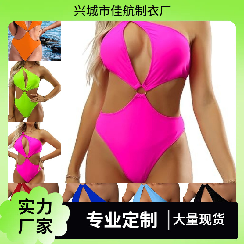 欧美跨境新款连体比基尼泳衣女聚拢性感显瘦遮肚修身泡温泉游泳衣