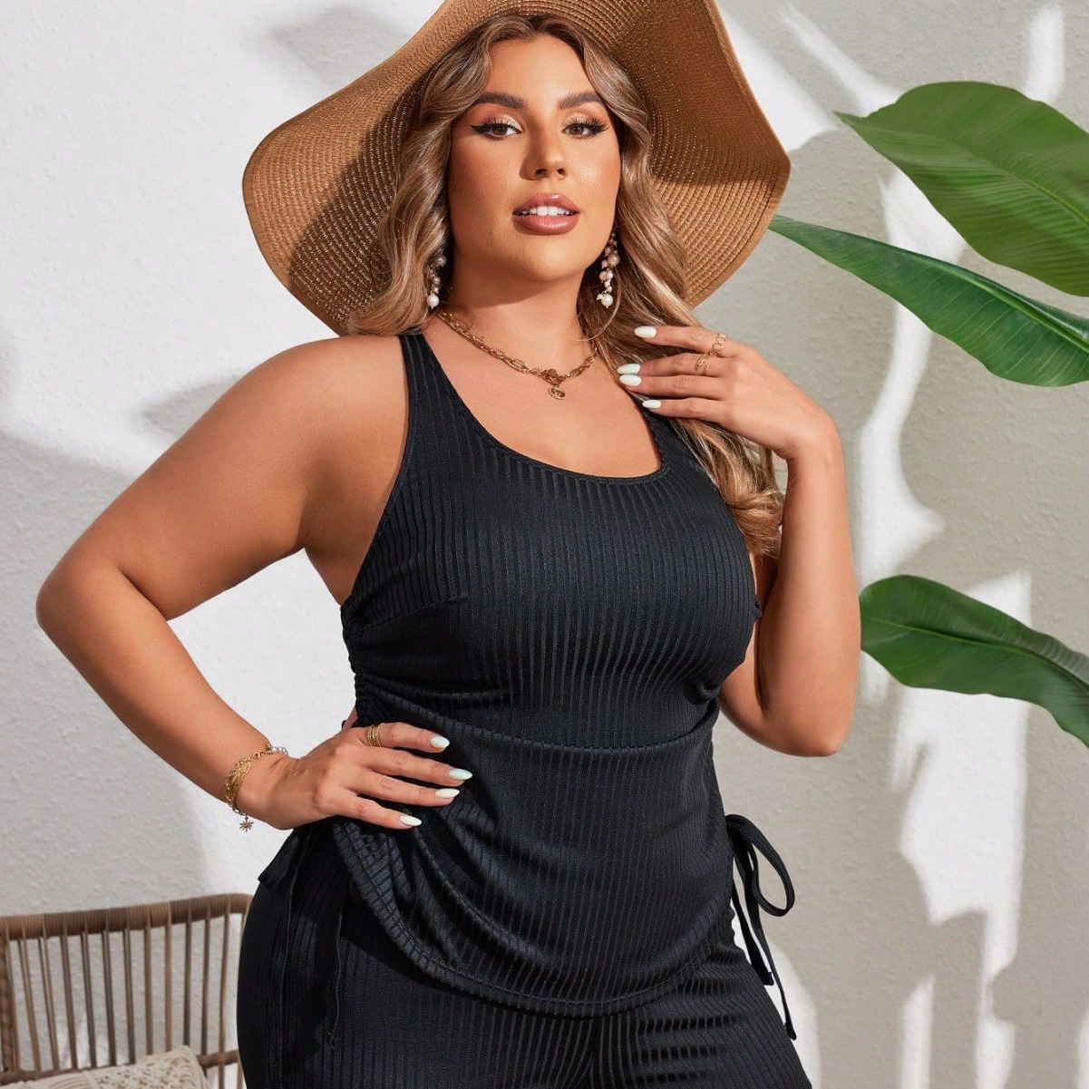 新款欧美跨境外贸大码分体纯色遮肚显瘦平角短裤泳衣女泳衣套装