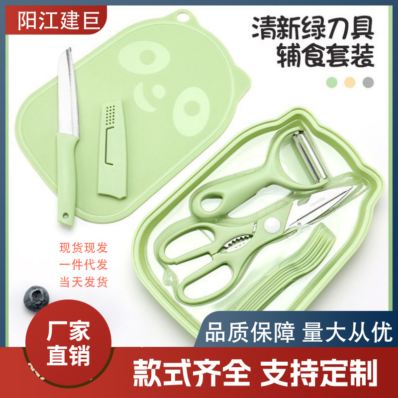 不锈钢水果刀剪四件套菜板宝宝辅食便携迷你刀具礼品套装工厂直销