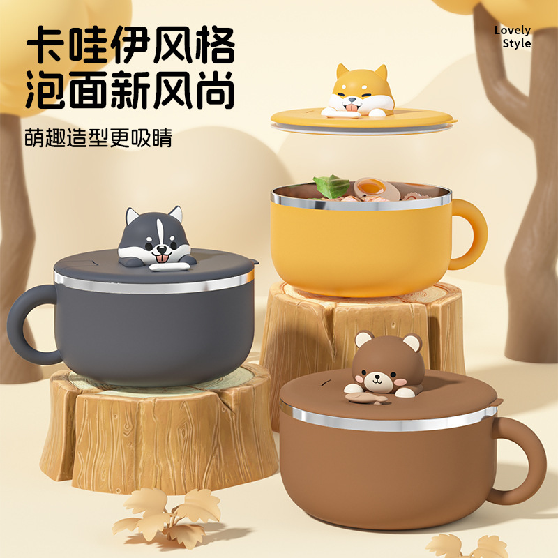 304不锈钢泡面碗带盖ins可爱便携泡面神器可滤水食堂便当盒快餐碗