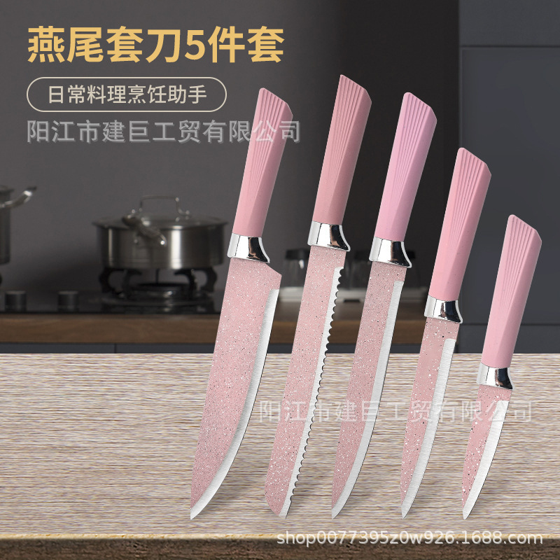 刀具套裝阳江菜刀不锈钢刀喷漆厨房扇贝柄五件套批发粉色刀具套装
