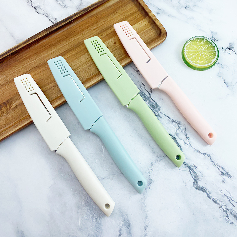 厨房水果刀带刀套刮皮刀削皮刀两件套 糖果色削皮器 塑料瓜果刨刀