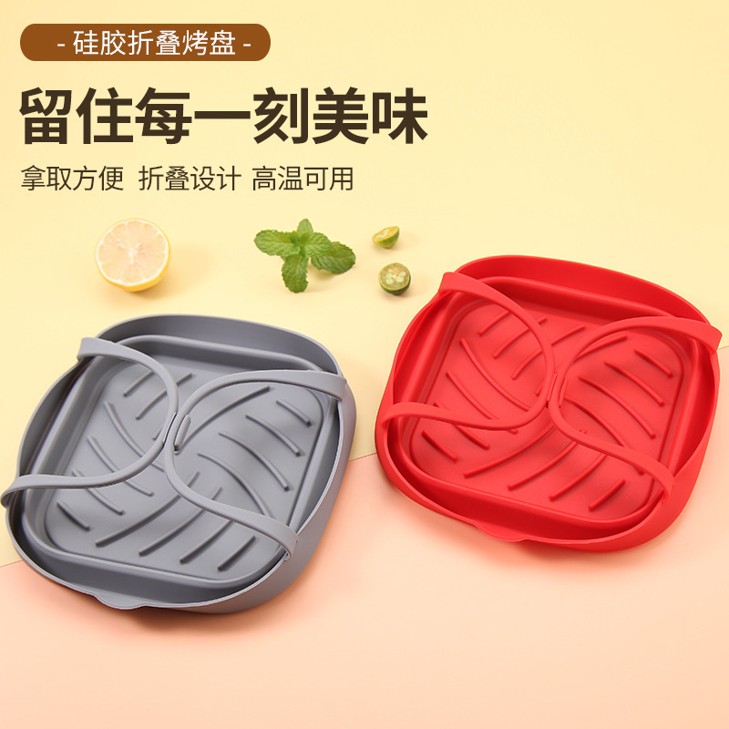 折叠硅胶烤盘空气炸锅内胆烤锅烘焙模具烤箱专用圆形食品级硅胶盘