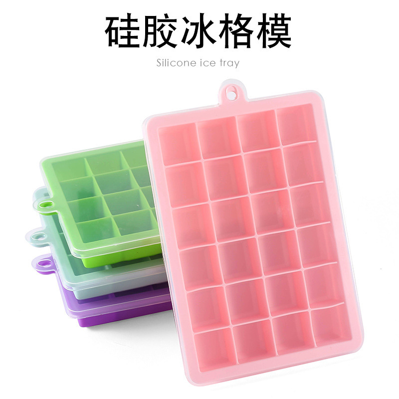 24格15格带盖方形硅胶冰格 家用制冰块模具宝宝辅食模具食品级