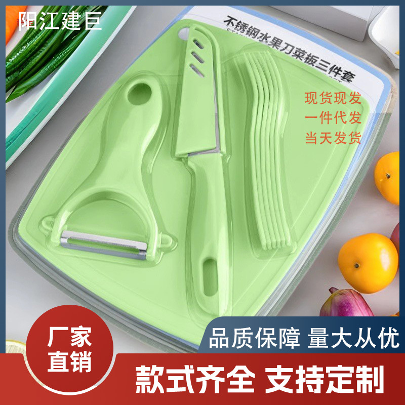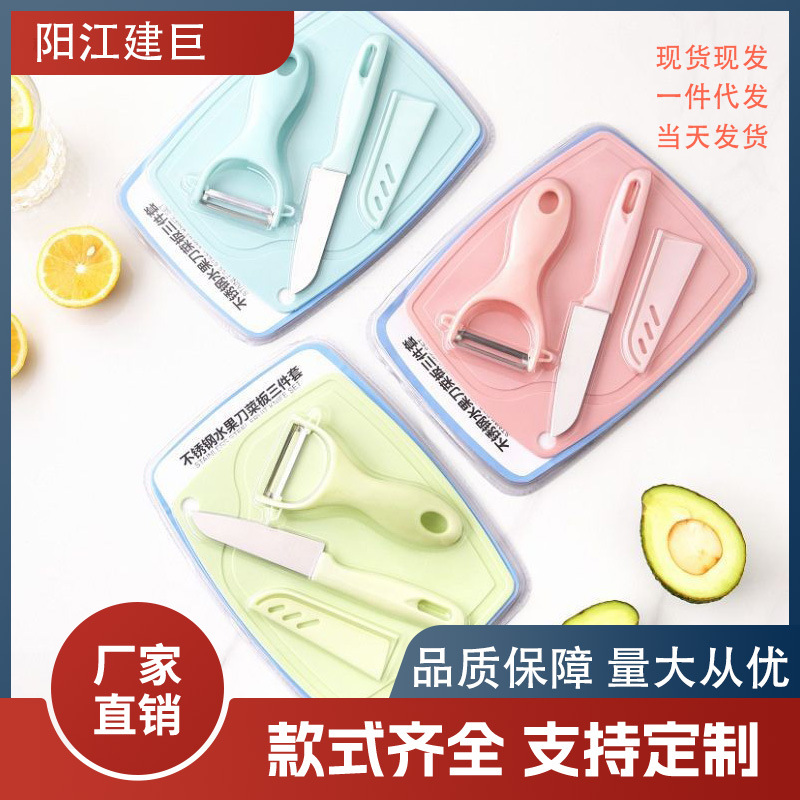 源头工厂刀具套装水果刀三件套带菜板瓜刨厨房礼品刀厨房实用刀具