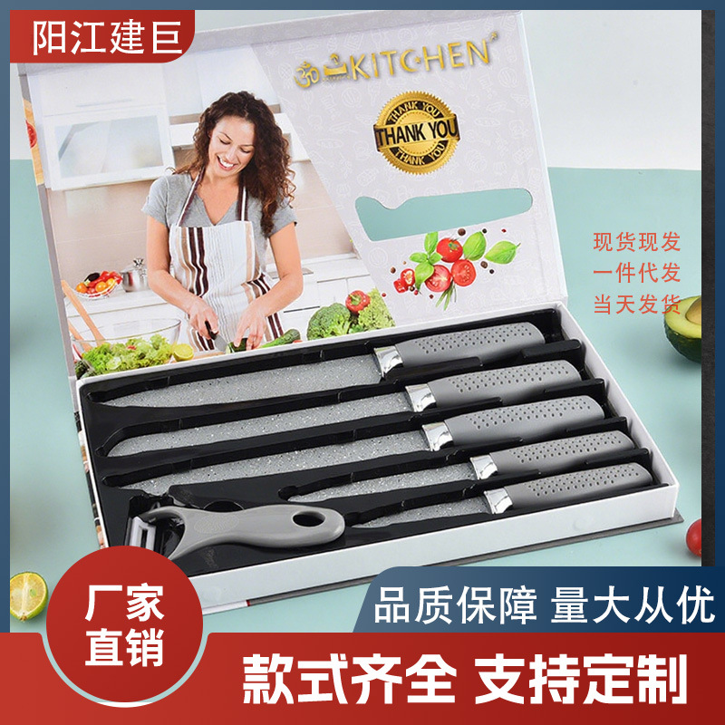 新款辣椒柄不锈钢厨房刀具套装六件套家用厨房切菜切片礼品盒套刀
