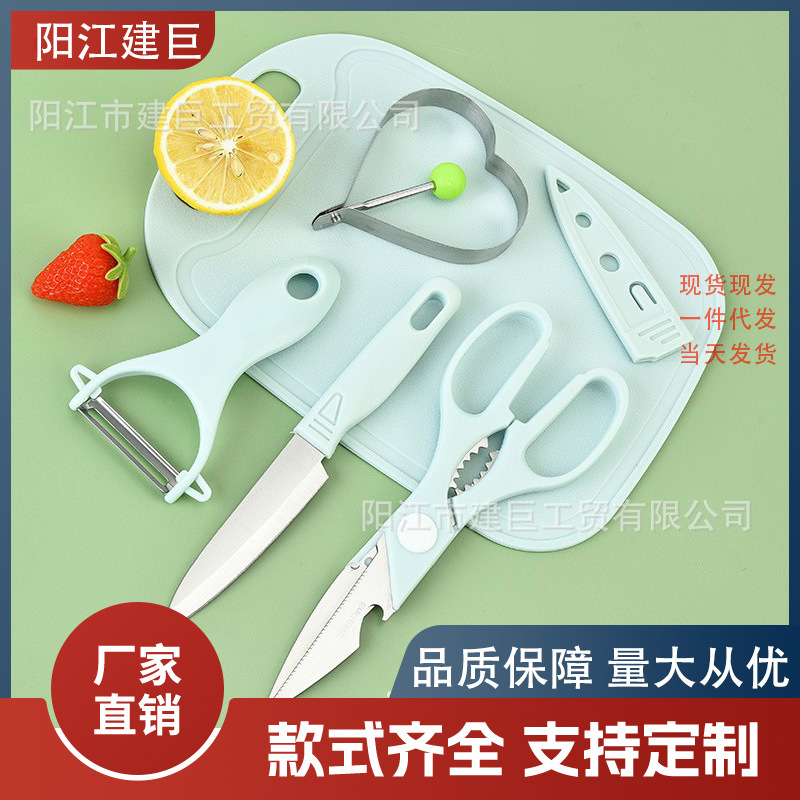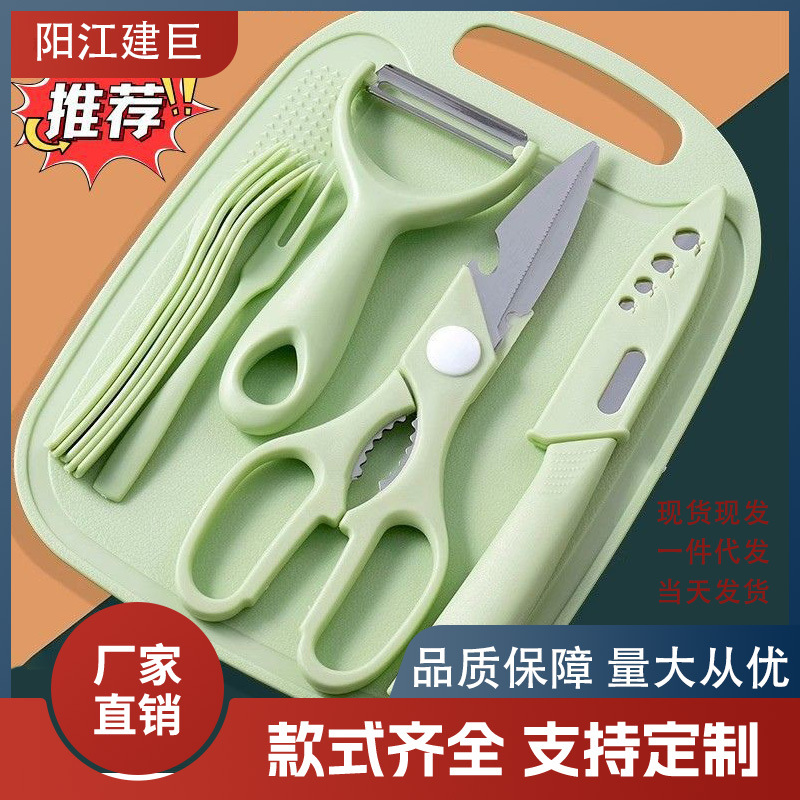 源头厂家不锈钢水果刀套装厨房家用带叉子瓜刨菜板便携式削果神器