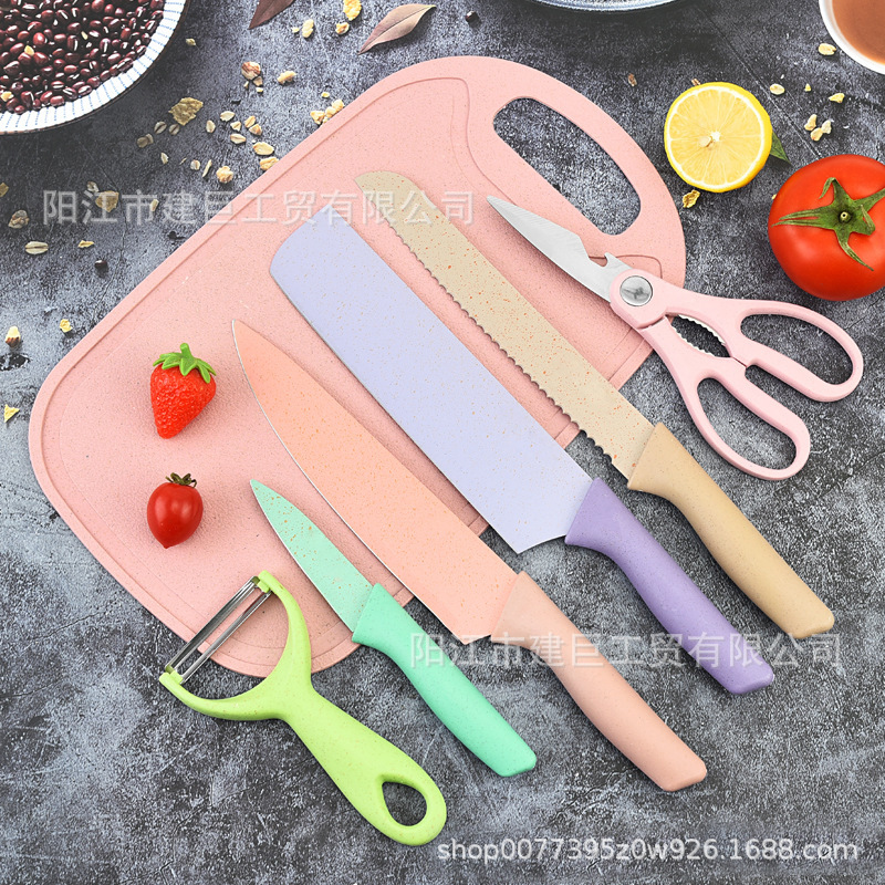 新款美鱼柄喷漆菜刀套装厨具六件套厨房不粘不锈钢批发菜刀喷漆刀