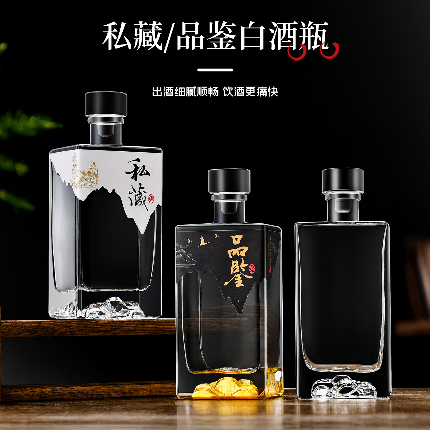 500毫升晶白料白酒瓶透明密封白酒瓶水晶玻璃盖子方形白酒瓶