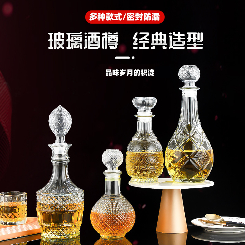 时尚创意威士忌酒瓶酒樽雕花玻璃透明酒具红酒葡萄酒密封空酒瓶
