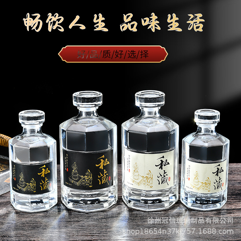 高档八棱白酒瓶500ml透明玻璃白酒瓶250ml密封白酒瓶晶白料酒瓶
