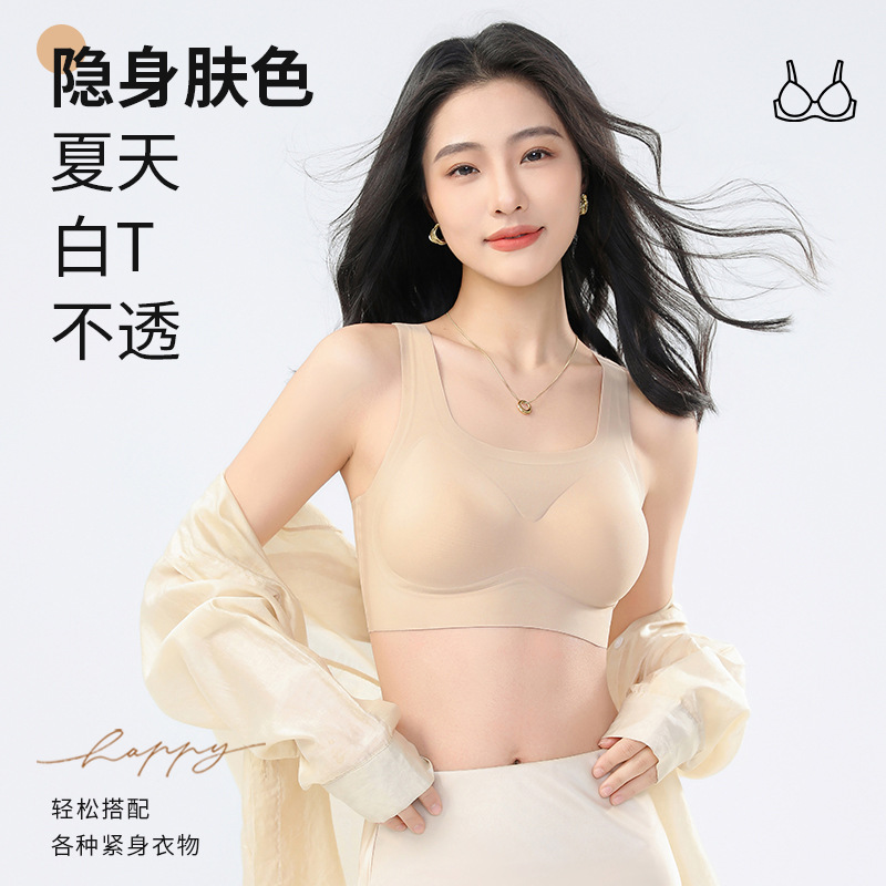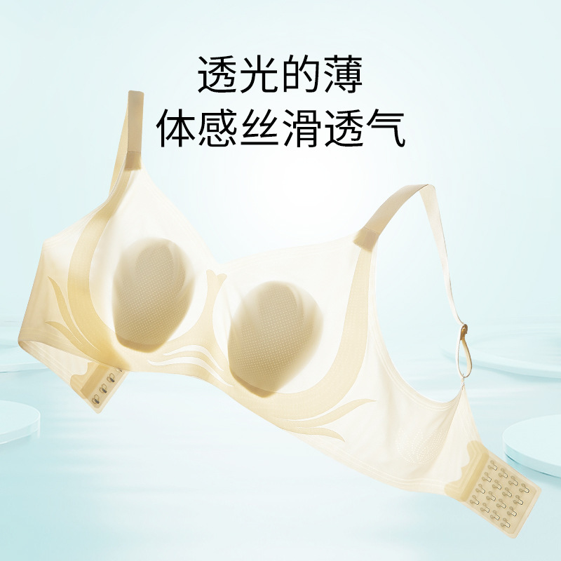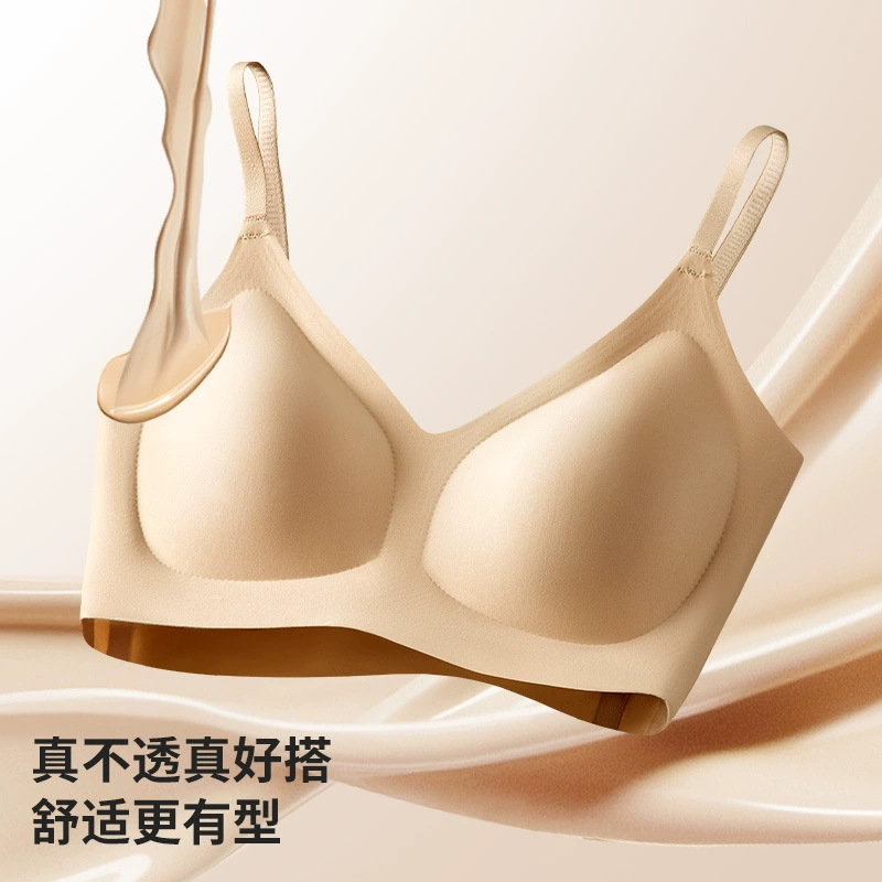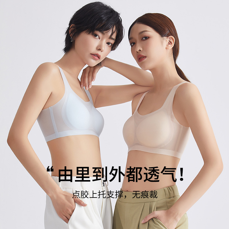 一片式超薄凉感无痕内衣舒适聚拢收副乳速干果冻胶文胸背心式胸罩