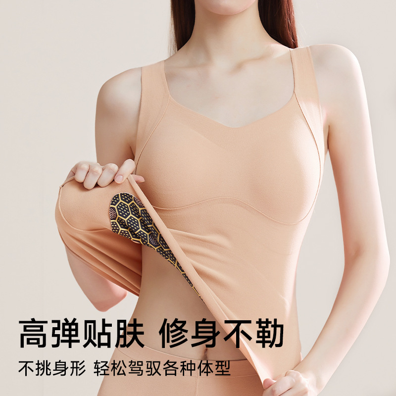 秋冬德绒保暖背心女带胸垫一体自发热无痕修身贴片内衣女可外穿