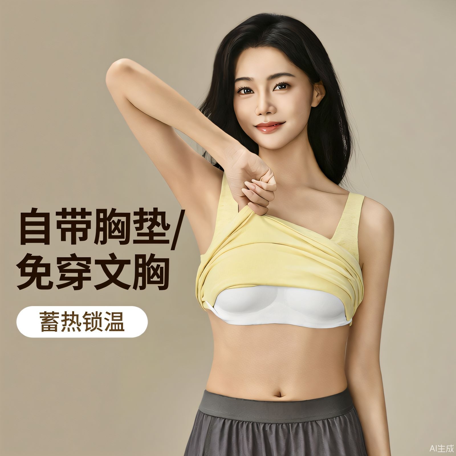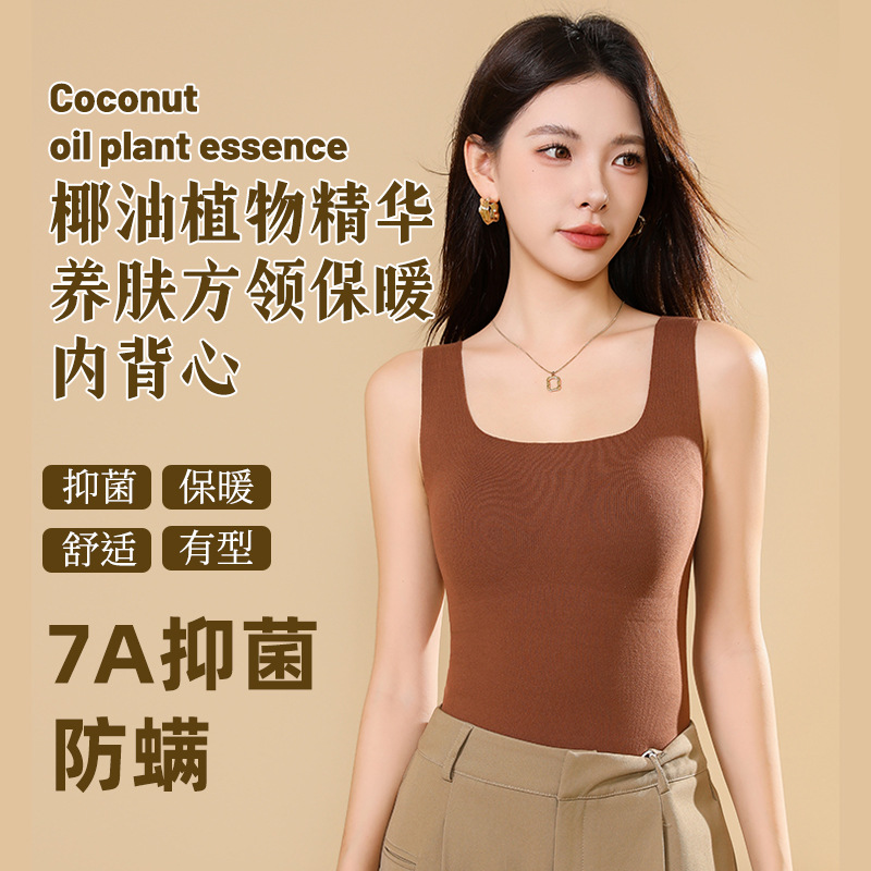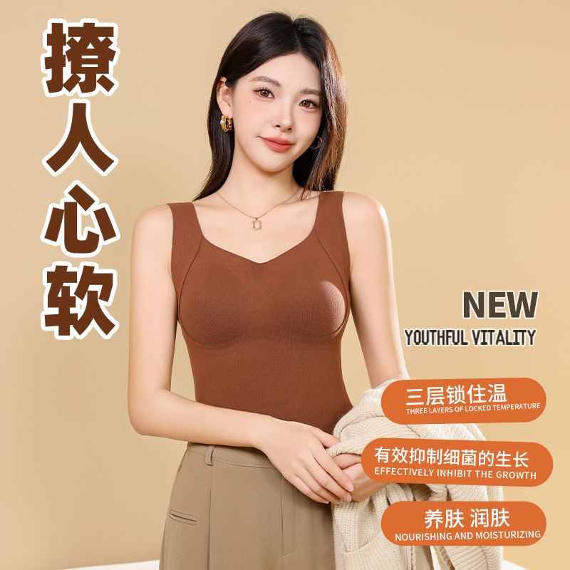 秋冬椰香抽条保暖背心7A抑菌带固定杯内衣V领内穿外搭女背心式