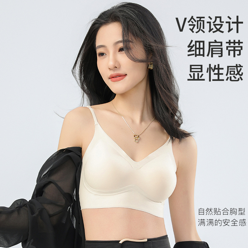 新品爆品同款内衣V领聚拢无痕一片式女士文胸透气舒适小吊带内衣