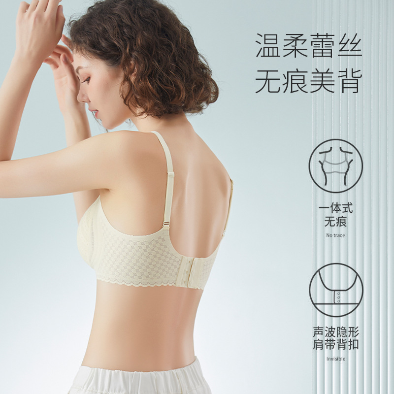 爆款温柔风性感镂空蕾丝无痕美背内衣聚拢上托收副乳舒适凉感胸罩