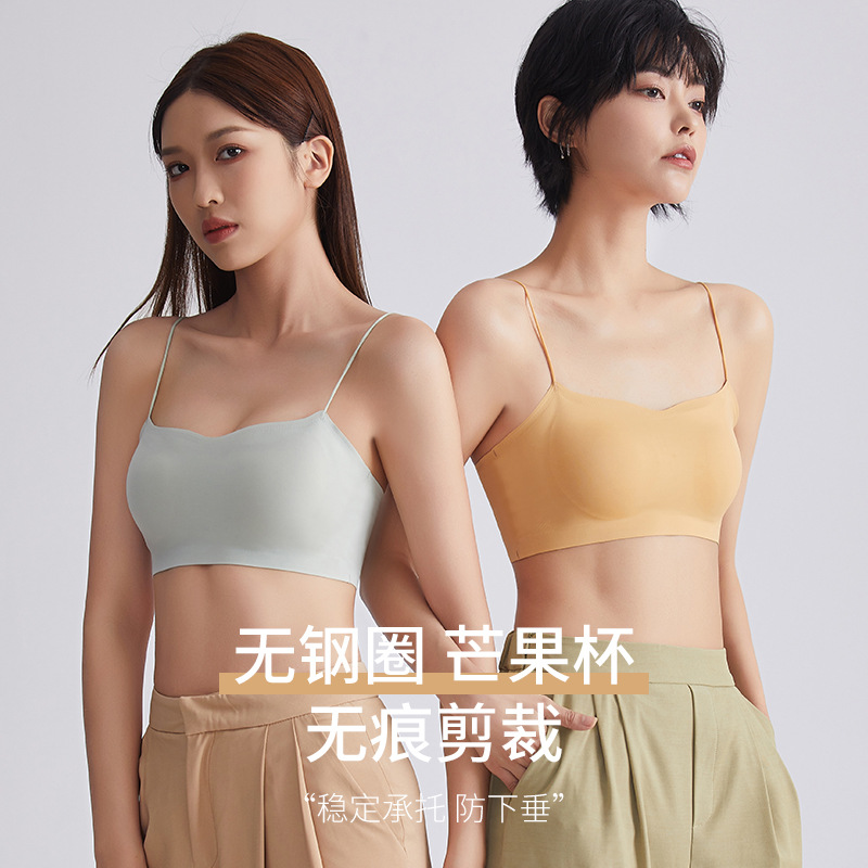 时尚百搭芒果固定杯吊带内衣女高品质一片式隐形无痕文胸上托抹胸