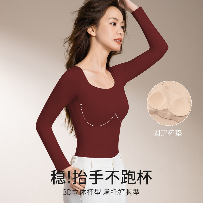 无痕保暖内衣带胸垫内搭可外穿秋衣修身打底衫衣女士长袖冬季批发