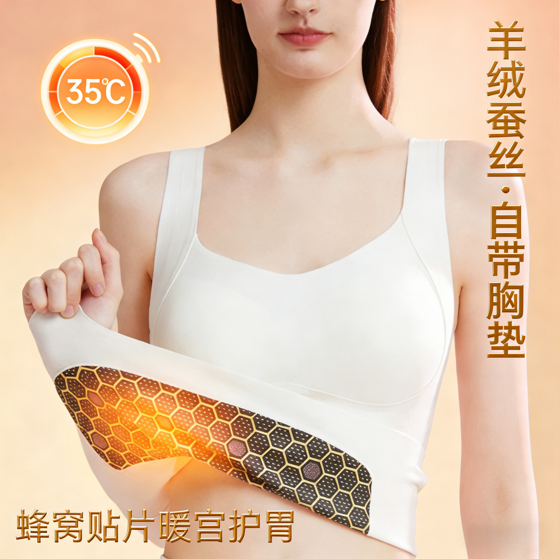 秋冬羊绒蚕丝保暖背心内搭带胸垫固定杯无痕美肤恒温保暖内衣女士