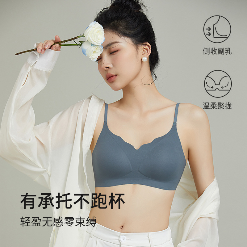 无痕女士内衣宽肩带无钢圈防下垂软支撑提拉聚拢透气简约女士文胸