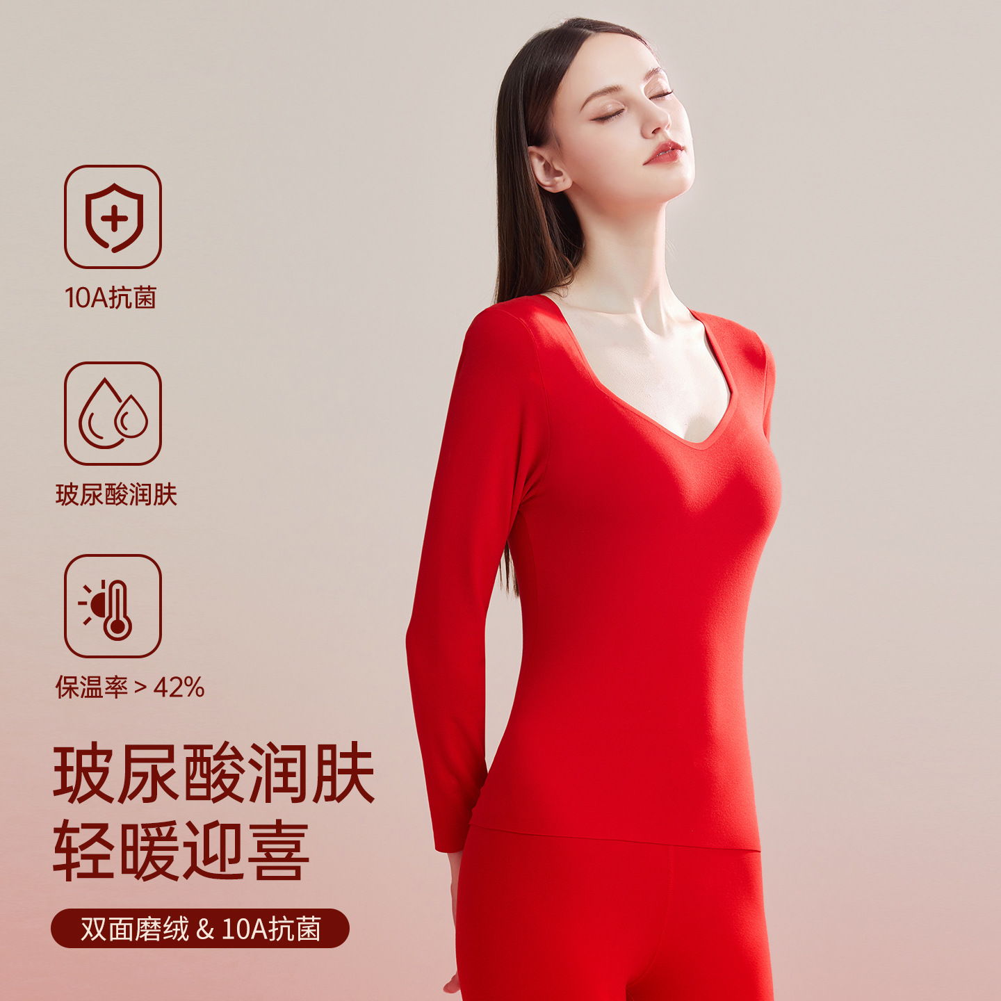 大红新款羊毛保暖裤无痕双面磨绒女士修身高腰打底裤抑菌发热