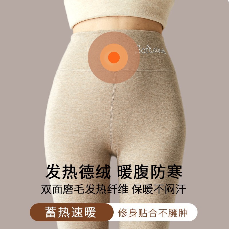 秋冬羊毛蚕丝德绒保暖裤女高腰收腹秋裤无痕双面磨毛抗静电打底裤