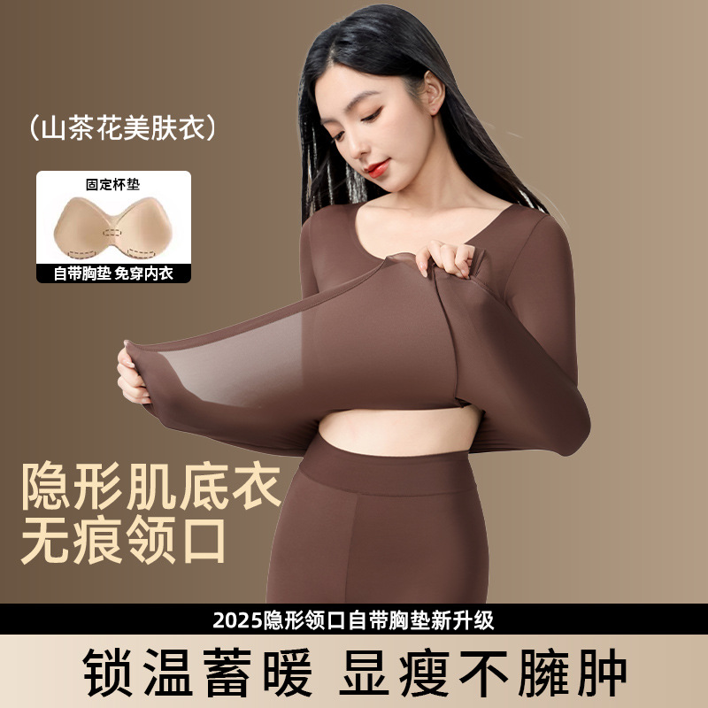 自带胸垫保暖美肤衣恒温发热隐形无痕秋衣秋裤套装打底衫女士内衣