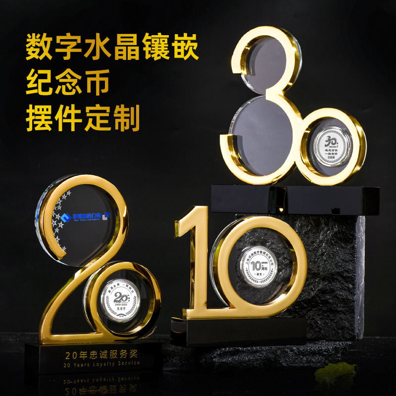 周年庆纪念浮雕高档数字水晶摆件年会创意礼品送同事员工diy奖杯
