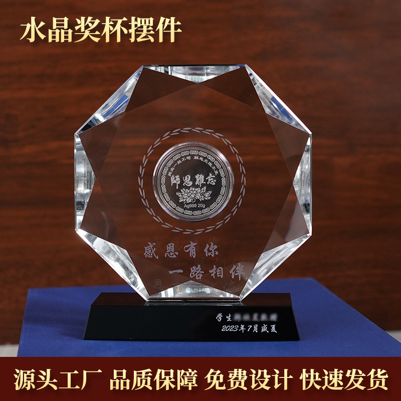 八角水晶奖杯订作刻字创意年会颁奖奖牌纪念品加盟代理授权牌批发