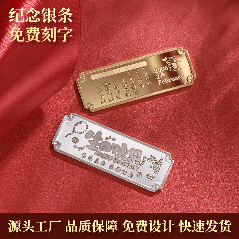 纯银银条浮雕纪念徽章员工入职退休纪念品周年庆生日乔迁礼物