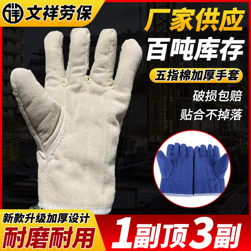 -               五指棉劳保手套加厚隔热劳保手套烤箱烘培手套白棉花五指棉手套