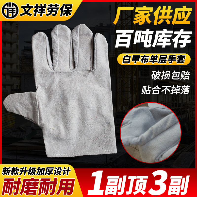 -               厂家直销白甲布单层劳保手套夏秋季专用透气性好耐磨批发耐用批发